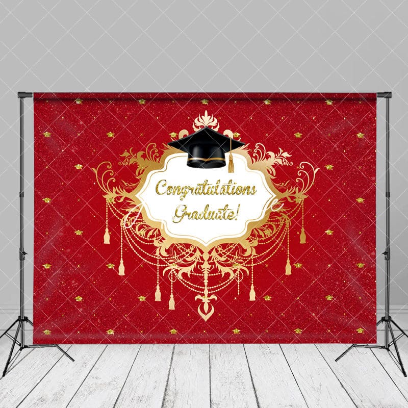Red Gold Graduation Ceremony Photos Studio Backdrop