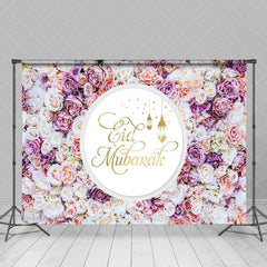 Romantic White Purple Floral Eid Mubarak Backdrop