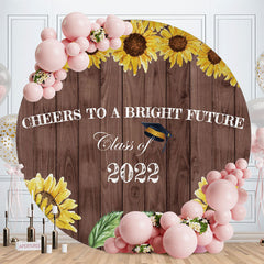 Round Sunflowers Brown Wood 2022 Grad Backdrop