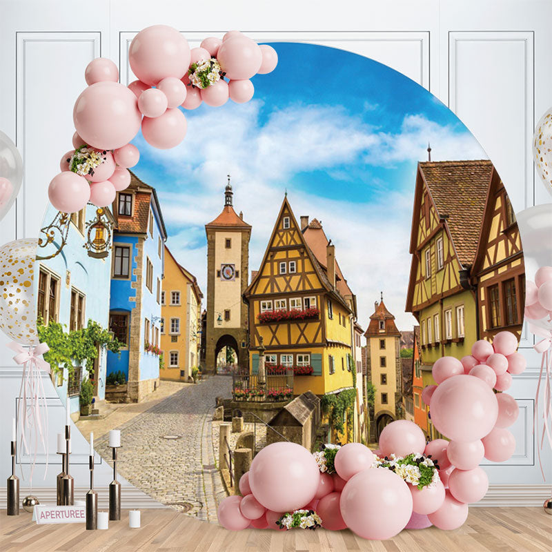 Round Unique House And Blue Sky Happy Birthday Backdrop