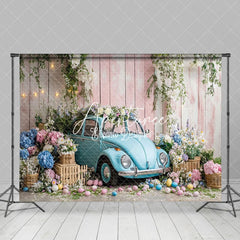 Aperturee Blue Beetle Car Eggs Flowers Easter Canto Backdrop