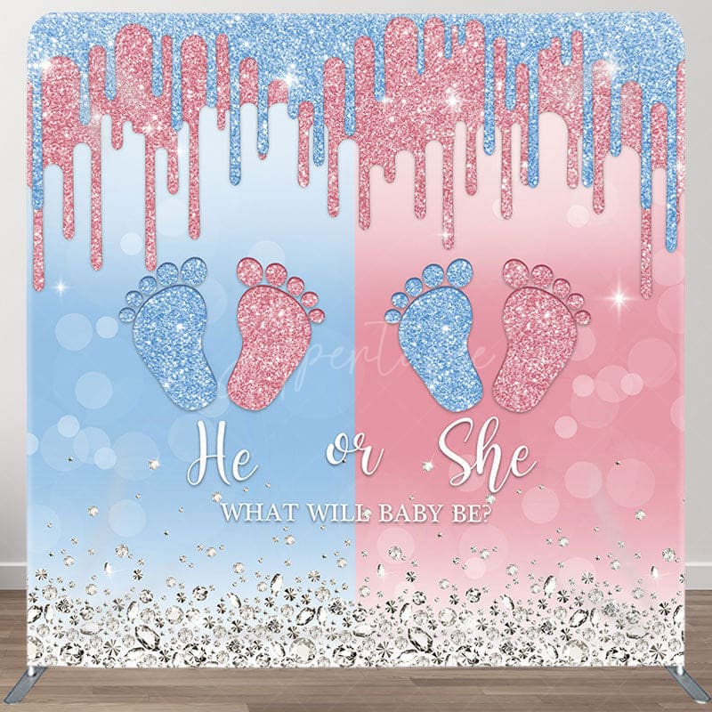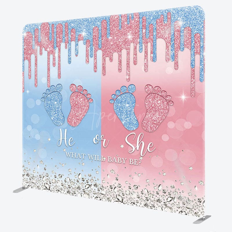 Aperturee Blue Pink Foot Fabric Backdrop Cover for Baby Shower
