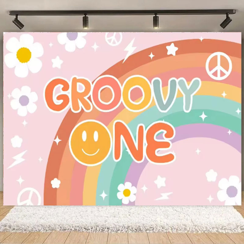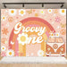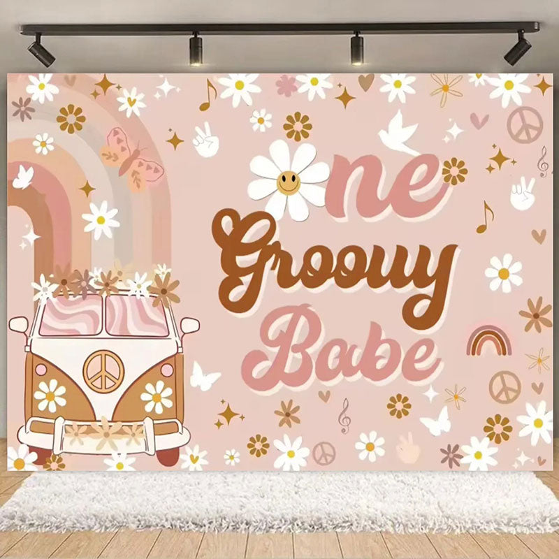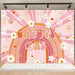 Aperturee Boho Rainbow Groovy One Birthday Backdrop, Daisy Floral and Bus, Perfect Party Scene Decor for Girls