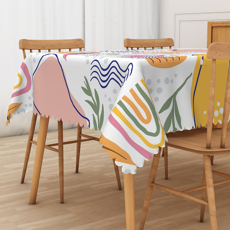 Aperturee Cute and Fresh Tablecloth with Lovely Earth Tone Abstract Pattern, for Modern and Natural Dining Decor
