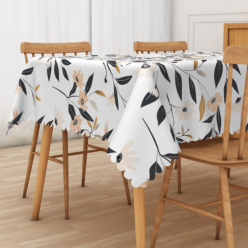 Aperturee Modern Floral Tablecloth with Black and White Botanical Print, for Minimalist and Elegant Dining Decor