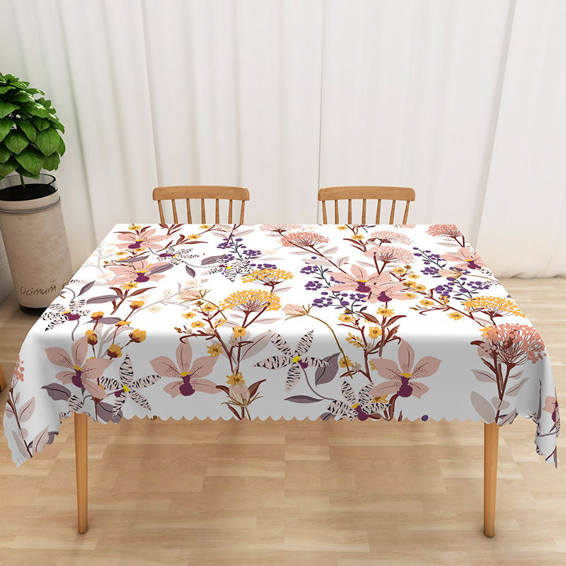 Aperturee Pink and Yellow Floral Tablecloth with Green Leaves, for Spring and Summer Garden Party Decorations