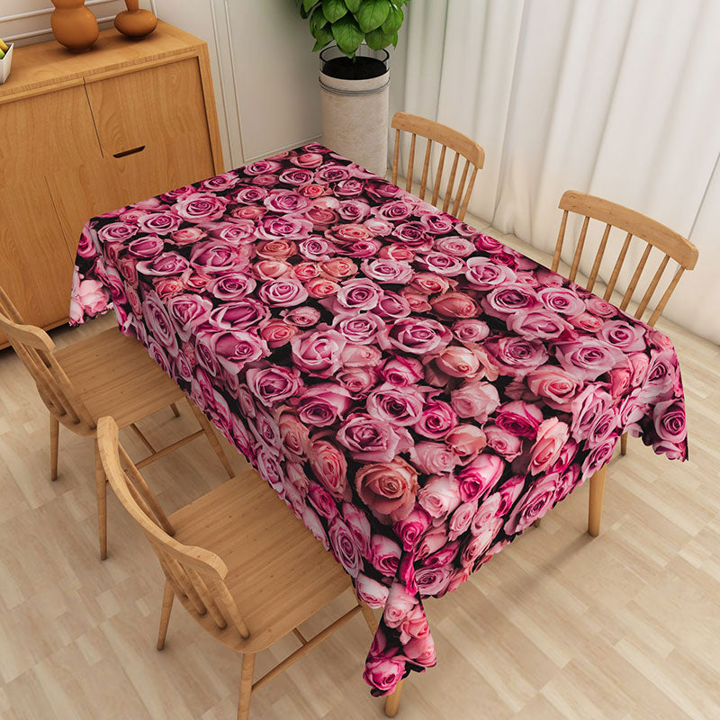 Aperturee Romantic Pink Rose Floral Tablecloth, for Wedding, Bridal Shower, and Valentine's Day Dining Table Decor