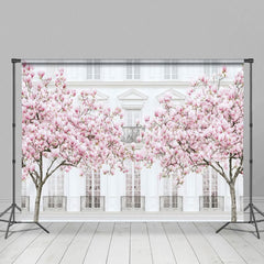 Aperturee Sakura Tree White Elegant Building Photo Backdrop