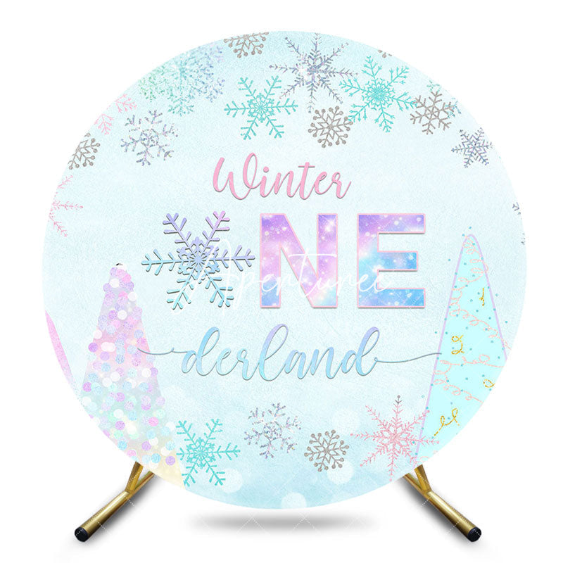 Aperturee Snowflake Winter Onederland Round Birthday Backdrop