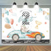 Aperturee Two Fast Racing Car Birthday Backdrop For Boys, Sports Party Decor, Kids Photo Prop