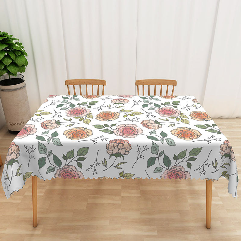 Aperturee Vibrant Floral Tablecloth with Colorful Flowers and Green Leaves, for Summer Party and Outdoor Dining