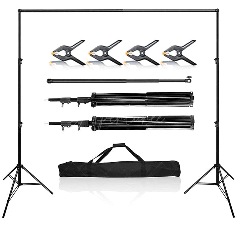 The aluminum alloy construction professional backdrop stand, making it strong for heavy-duty work. Maximum load capacity: 15kg. Ideal for portrait, twitch streamer, YouTube videos, photoshoots, interviews or music videos.