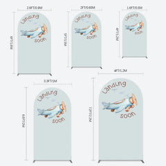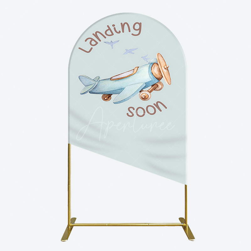 Aperturee Blue Airplane Landing Soon Baby Shower Arch Backdrop