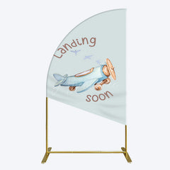 Aperturee Blue Airplane Landing Soon Baby Shower Half Moon Arch Backdrop