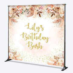 Aperturee Custom Birthday Bash Backdrop for Her, Boho Pampas Grass and Dried Flowers, Personalized Gold Glitter Photo Prop