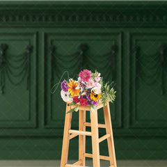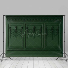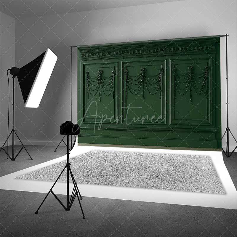 Aperturee Elegant Dark Green Wall Photography Backdrop, Classic Molding with Shells and Pearls, Vintage Luxury Interior
