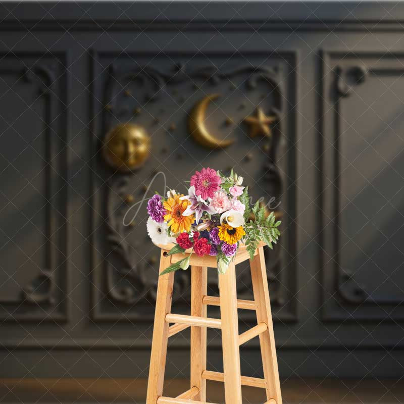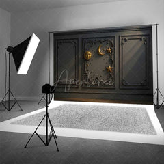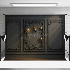 Aperturee Elegant Gray Wall Photography Backdrop with Gold Sun Moon and Stars, Classic Molding Panel Studio Photo Prop