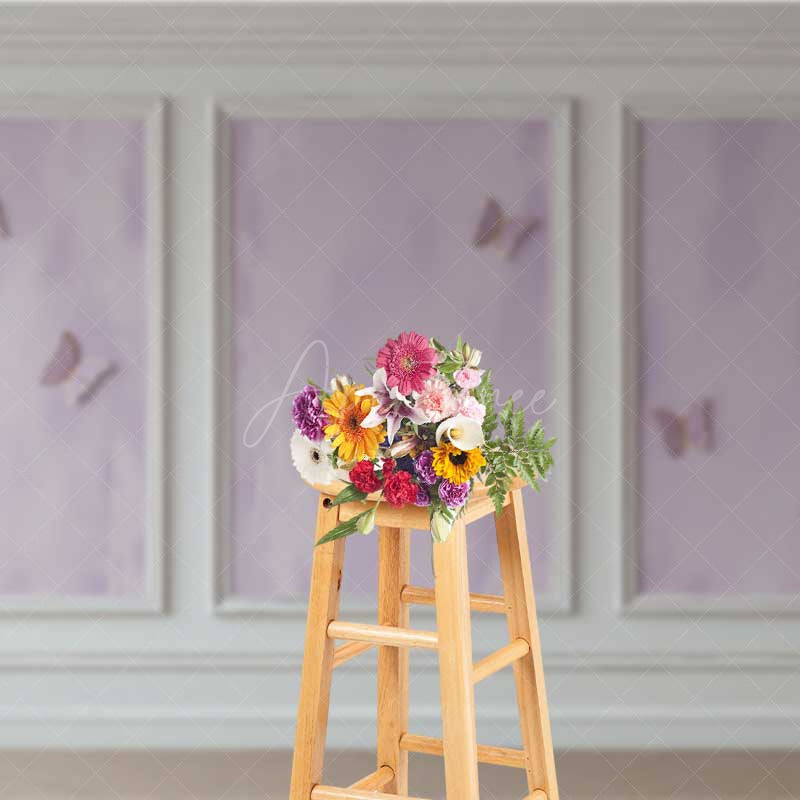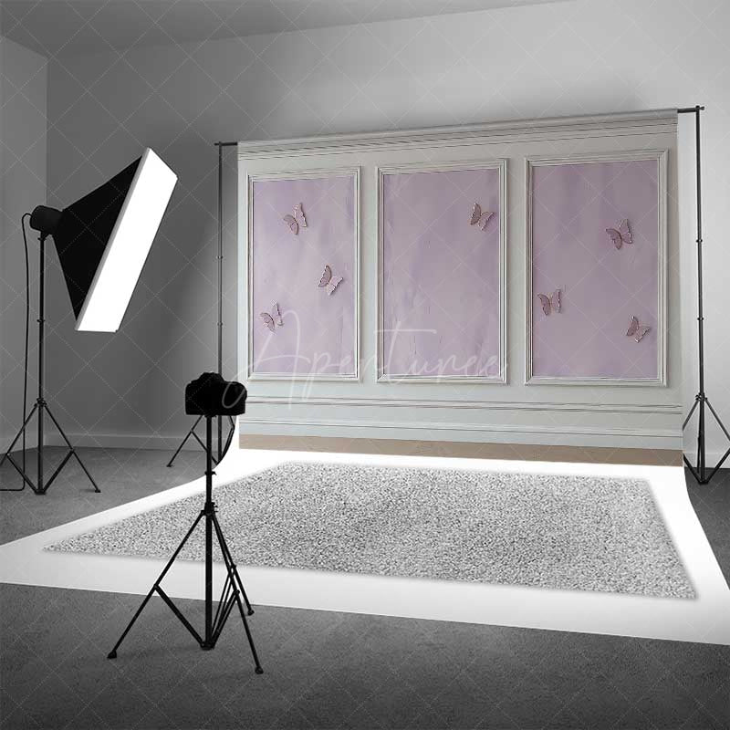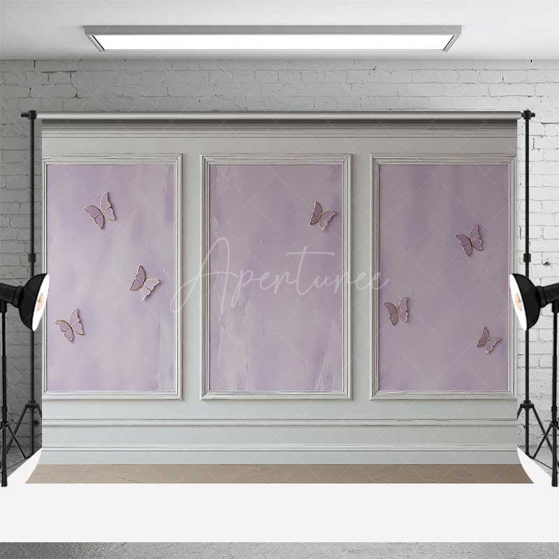 Aperturee Elegant Lavender Wall Photography Backdrop with Gold Butterflies, Classic Molding Panel Studio Photo Prop Decor