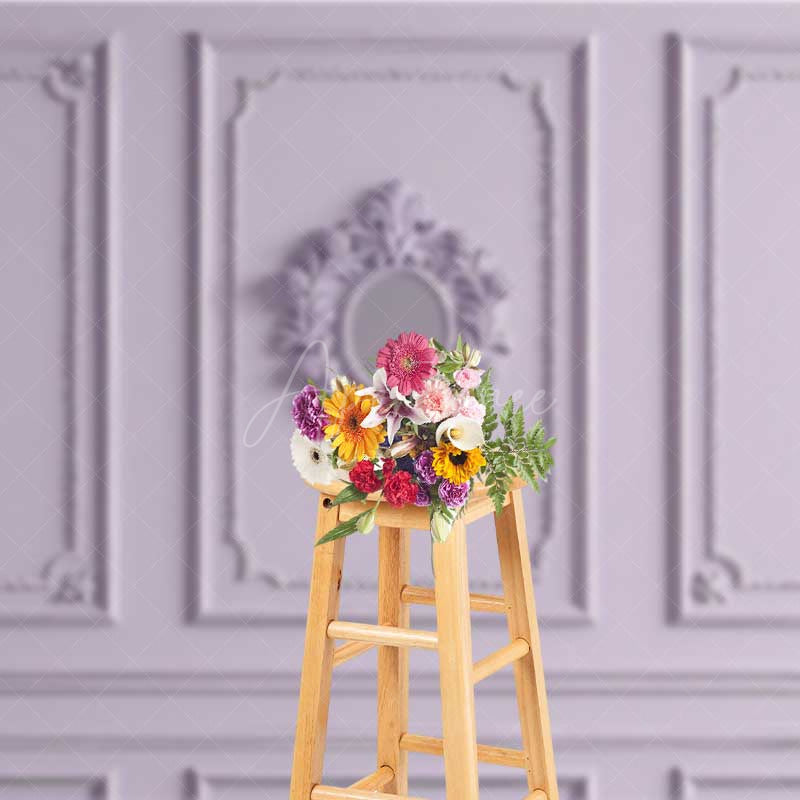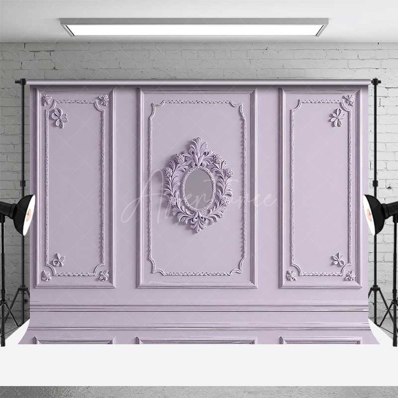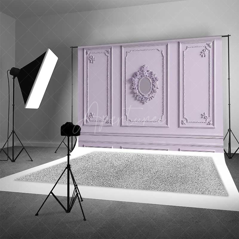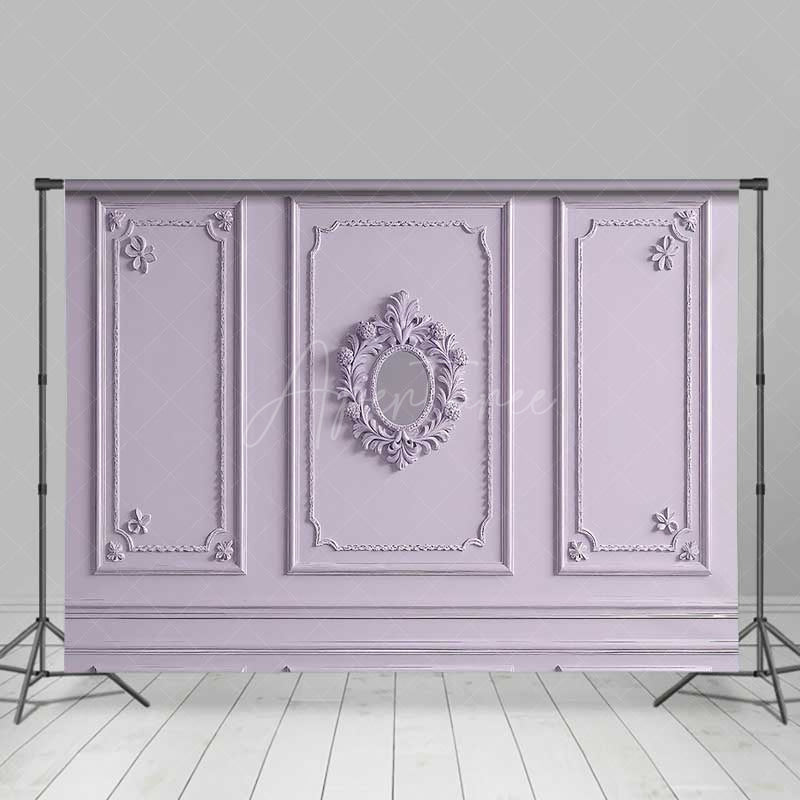 Aperturee Elegant Lavender Wall Photography Backdrop with Ornate Mirror, Classic Molding Panel Studio Photo Prop Decor