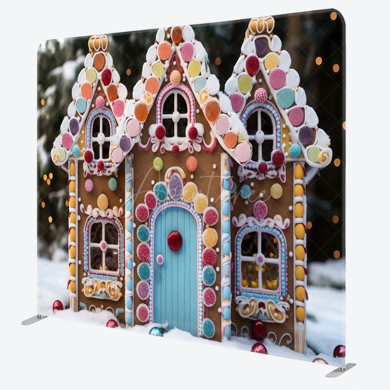 Aperturee Gingerbread House Snow Christmas Pillow Case Backdrop