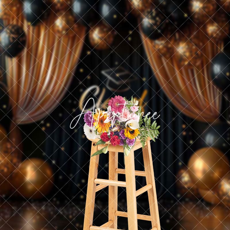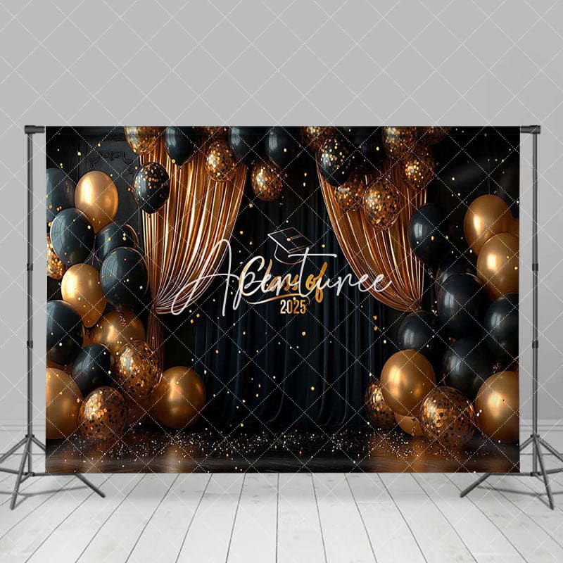 Aperturee Gold Black Curtain Balloons Class of 2025 Backdrop