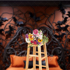 Aperturee Gothic Bat Headboard Photography Backdrop, Spooky Halloween Bedroom with Flying Bats, Dark and Moody Photo Prop