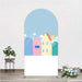 Aperturee Happy Birthday Cartoon Houses Half Moon Arch Backdrop, Simple Blue Sky with Sun and Clouds Background, Kids Cute Town Party Decor