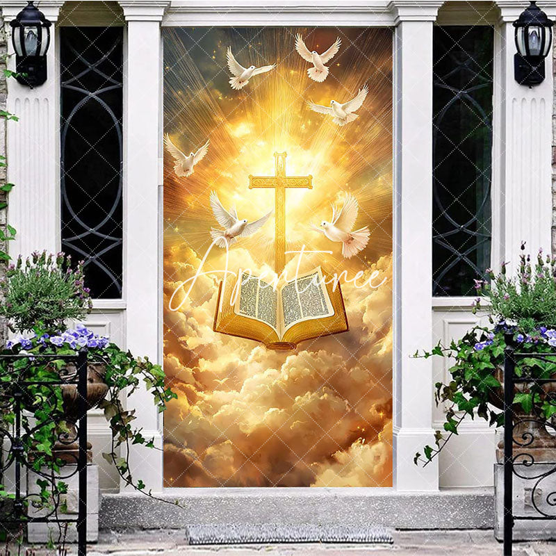 Aperturee Holy Gold Light Cross Dove Bible Easter Door Cover