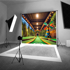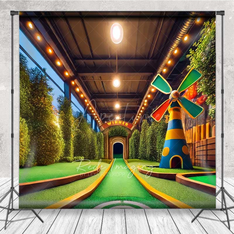 Aperturee Indoor Mini Golf Course Photography Backdrop, Fun Sports and Games Scenery with Windmill, Kids Party Photo Prop