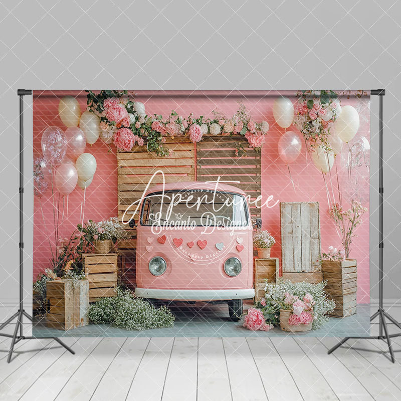 Aperturee Romantic Pink Bus Floral Valentines Day Backdrop