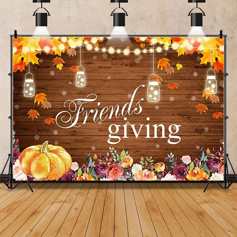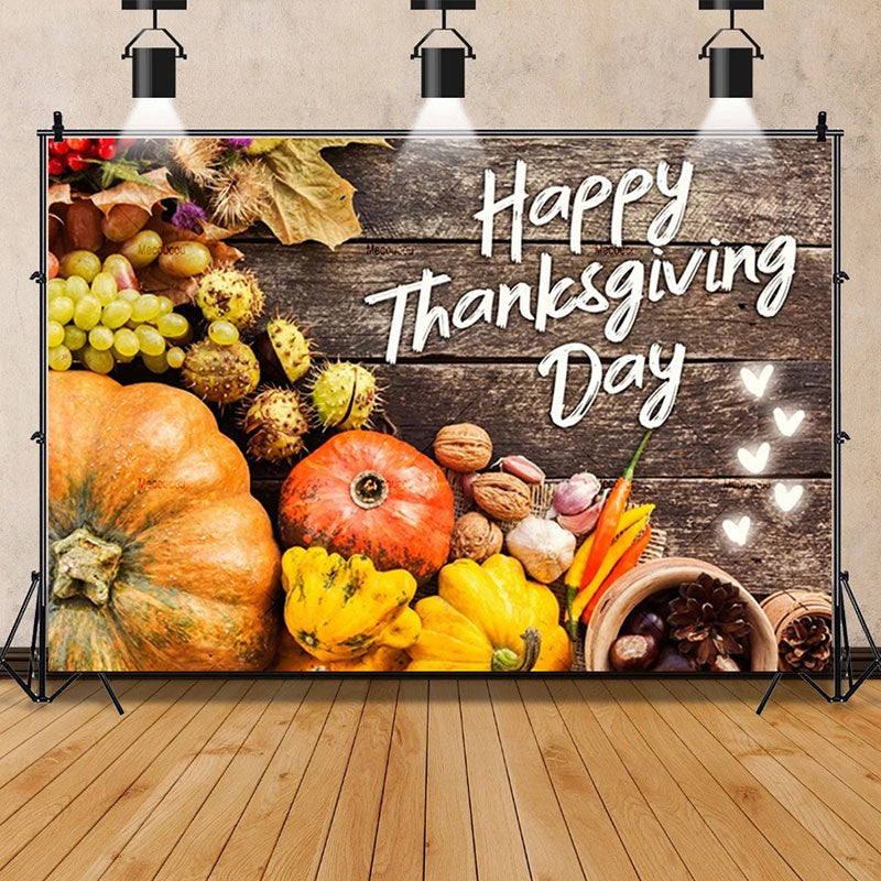 Aperturee Rustic Wood Harvest Scene Thanksgiving Day Backdrop, Pumpkins and Maple Leaves, Cozy Autumn Decoration