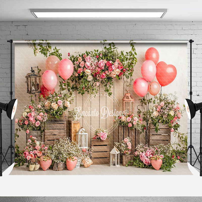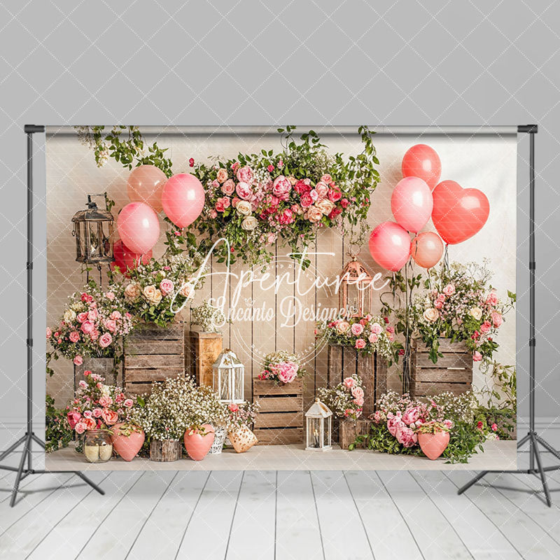 Aperturee Spring Floral Balloons Wood Valentines Day Backdrop