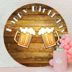 Circle Cheers To Happy Birthday Party Wooden Backdrop