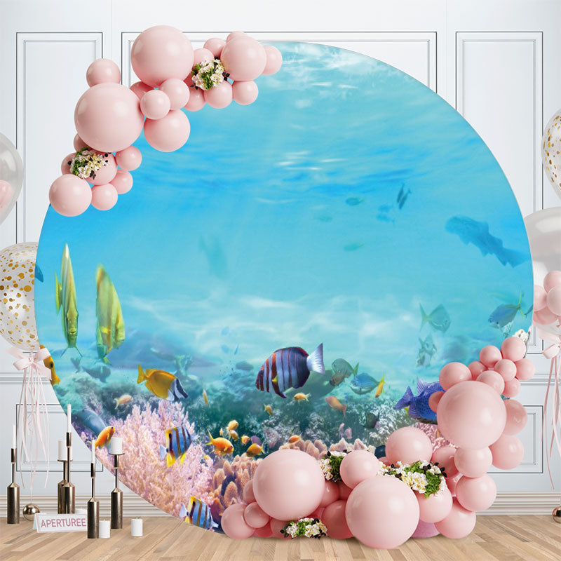 Clear Under Sea With Coral And Fish Round Backdrop