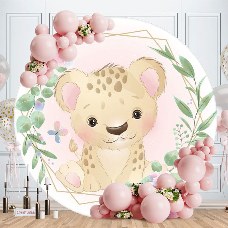 Khaki Leopard Green Leaves Round Baby Shower Backdrop