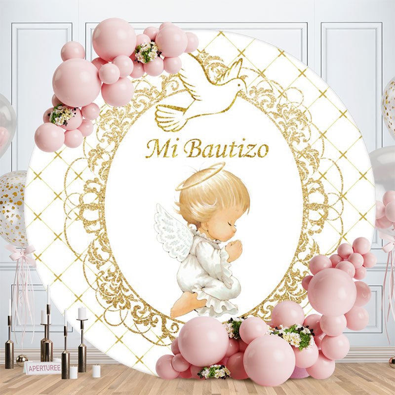 Round Gold Mi Bautizo Baby Shower Backdrop For Party