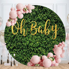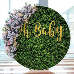 Round Gold Oh Baby Green Leaves Happy Birthday Backdrop