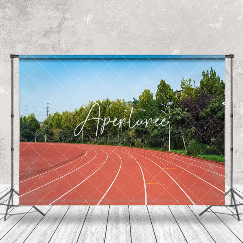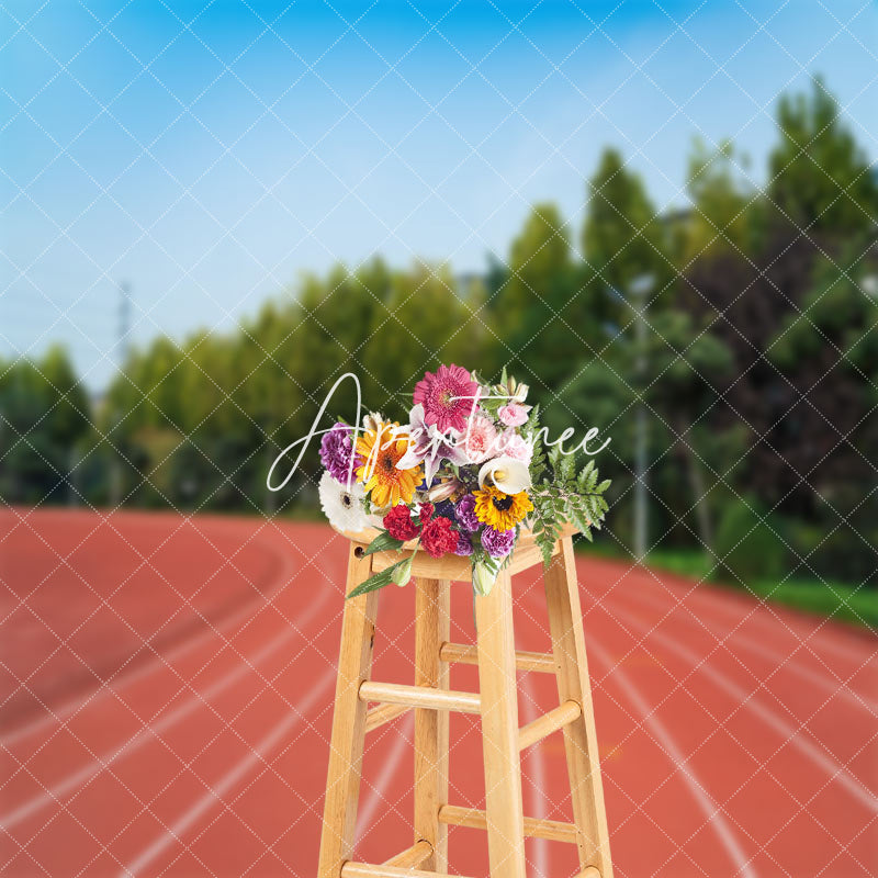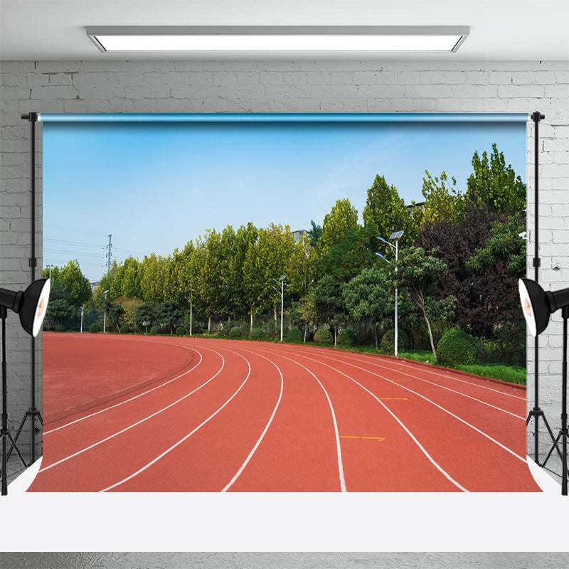 Trees Red Plastic Runway Sports Backdrop For Photo